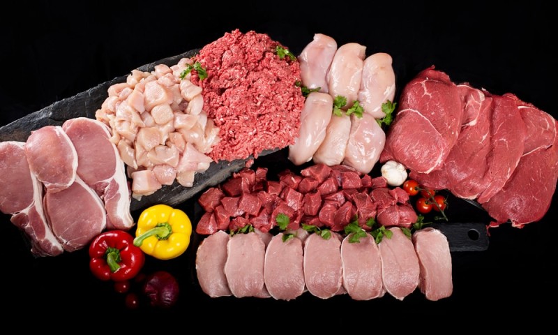 소고기, 돼지고기, 양고기, 닭고기, 양념하지 않은 생선 등이 포함됩니다. 주로 지방이 많은 부위의 고기를 주식으로 결정합니다. 육지의 고기는 목초에서 자연방목해 길러진 육류를 추천합니다. 이는 오메가3와 오메가6 비율 때문인데 목초에서 자연방목해 길러진 동물의 고기에서 오메가3와 오메가6의 비율이 가장 이상적이라는 1:1로 구성됩니다. 현대의 가축 농가에서는 지방이 많은 고기를 생산하기 위해 곡물 사료를 먹이고, 다량의 항생제를 투여합니다. 이때 곡물은 GMO 곡물을 포함하는 경우가 많아 이러한 고기는 오메가3가 희박하고 대부분 오메가6로 구성됩니다. 그래서 곡물을 먹여 키운 동물의 고기는 크게 추천하지 않습니다.