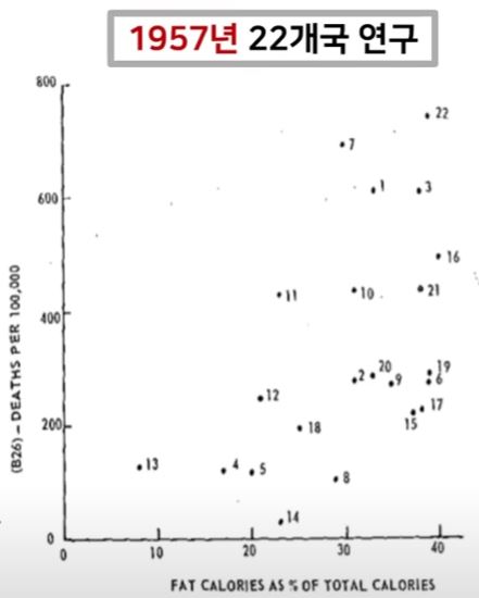 문제는 안셀 키즈 박사의 연구가 조작되었다는 점입니다. 안셀 키즈 박사는 포화지방을 섭취할수록 심장질환 사망률이 증가한다는 것을 6개국을 대상으로 한 연구에서 확인했다는 연구를 발표했는데, 이 연구는 처음에는 22개국을 대상으로 한 연구였으나 자신의 가설과는 달리 포화지방 섭취와 심장질환 사망률이 전혀 상관없다는 결론이 나왔습니다. 그러자 그는 자신의 가설을 지지할 수 있는 6개의 국가들만을 추려내어 자신의 가설이 맞다고 조작을 하였습니다. 이로 인해 전세계의 많은 사람들이 잘못된 지식을 받아들이고 질병으로 인한 고통 속에서 살아가게 되었습니다. 진짜 연구자라면 자신의 이득이 아닌 공익을 위해 연구를 해야 한다는 연구윤리를 져버린 것이죠.